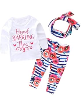 Bekleidung Longra Säugling Baby Mädchen lange Ärmel Brief T-Shirt Tops + Floral Hosen + Stirnband 3PCS Outfits…