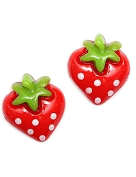 Idin Ohrclips – Rote, gepunktete Erdbeeren (ca. 15 x 18 mm)