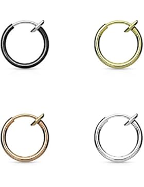 FAKE SEPTUM Piercing | NASENRING | OHRRING | 4er SET | Rosé, Silber, Gold, Schwarz | mit integrierter Feder |…