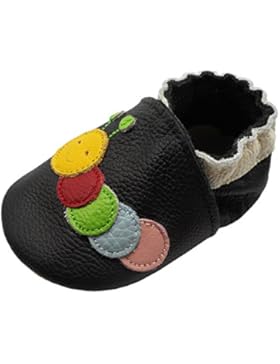 YIHAKIDS Weicher Leder Lauflernschuhe Krabbelschuhe Babyhausschuhe mit Wildledersohlen und Freches Raupe