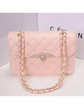eowder Pink Mädchen Damen PU Leder, Kette Schultertasche Cross Bag Tragetaschen Geldbörse (1PC)