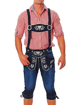Herren Trachten Lederhose mit Träger Spirit of Bavaria Kniebundhose Trachtenlederhose Tracht Hose Knie lang Oktoberfest…